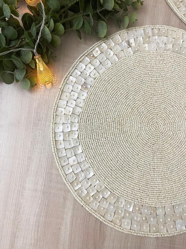 จานรองแก้วหรูหราทรงเรขาคณิตประดับลูกปัด งานแฮนด์เมดรักษ์โลก สำหรับตกแต่งโต๊ะอาหารที่บ้าน
