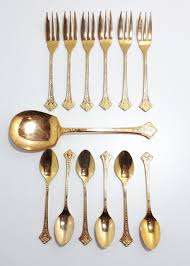 เครื่องใช้บนโต๊ะอาหารทำจากทองเหลืองแบบเก่าเครื่องใช้บนโต๊ะอาหารที่ทำจากทุบด้วยส้อมช้อนสำหรับบ้านร้านอาหารโรงแรมการจัดเลี้ยงใหม่