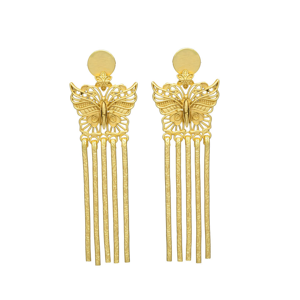ต่างหูทองเหลืองยาวชุบทองดีไซน์รูปผีเสื้อมาใหม่