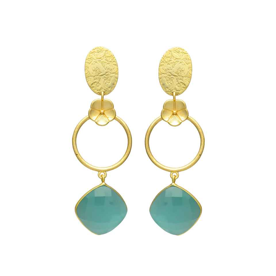 New Arrival Gold Plated Floral And Oval Green Monalisa Gemstone Earrings For Woman And Girls trendy Earring Brass Earring