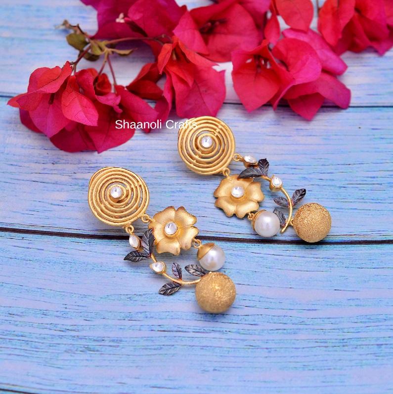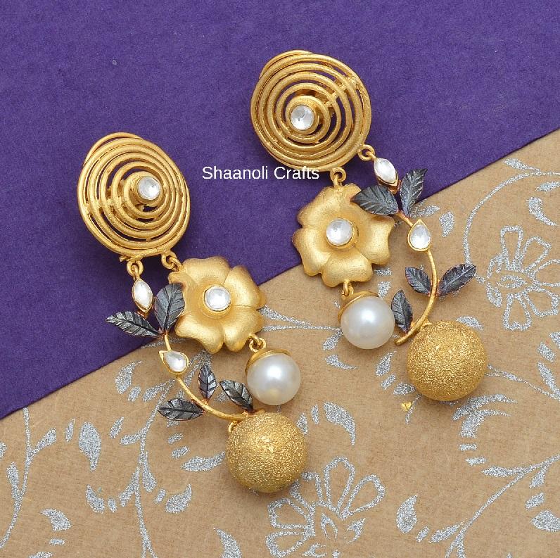 มาใหม่ต่างหูชุบทอง kundan เครื่องประดับทองเหลืองผสมแบบตะวันตกพร้อมเพชรมุกสำหรับงานแต่งงานของขวัญงานปาร์ตี้งานหมั้น