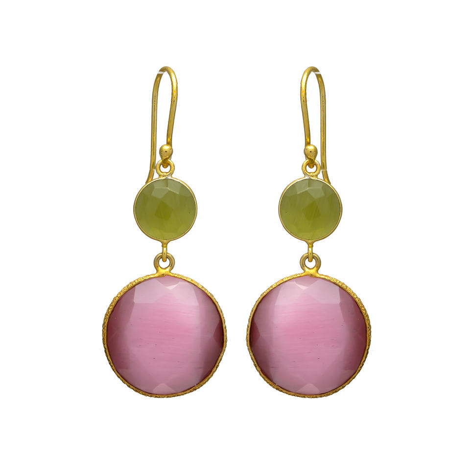 ต่างหูห้อยประดับอัญมณีสีทองมาใหม่ต่างหูทองเหลืองพลอยทัวร์มาลีนสีชมพู