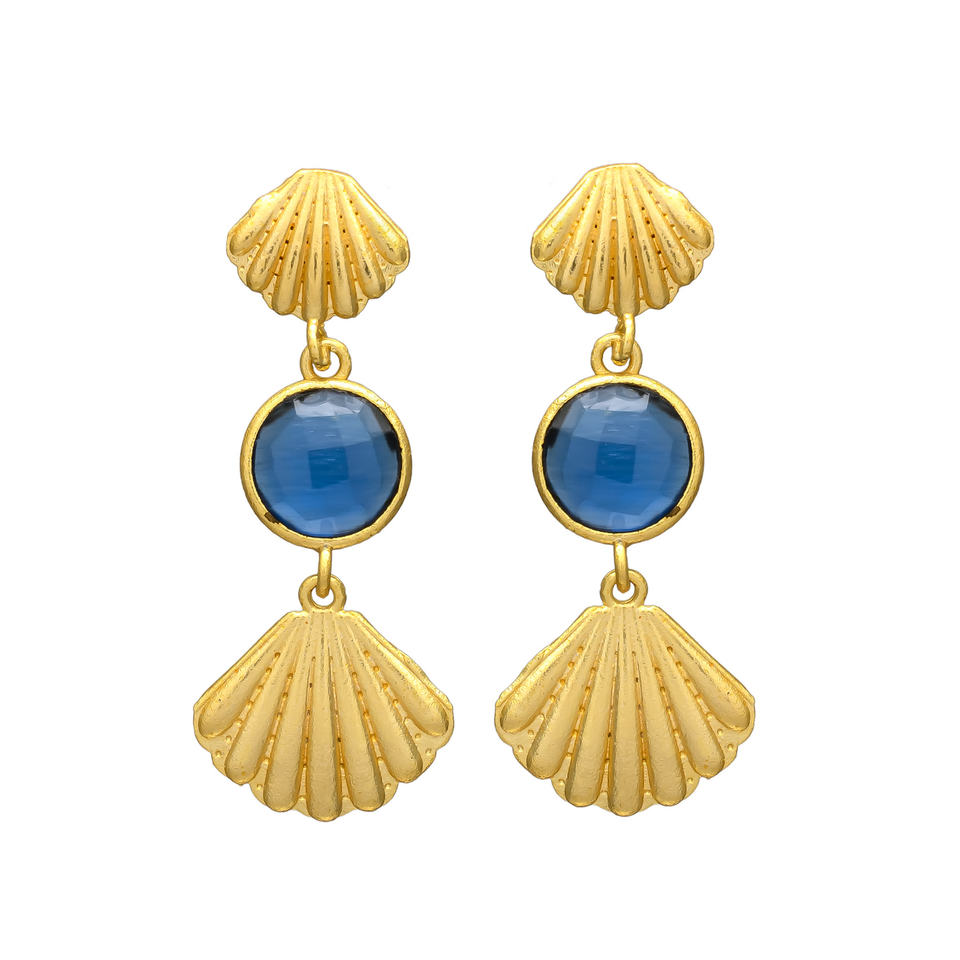 ต่างหูดีไซน์ใหม่สีทองประดับเปลือกหอย ดีไซน์โมนาลิซาสีน้ำเงิน ประดับพลอย ตัวเรือนทองเหลือง เหมาะสำหรับทุกคน