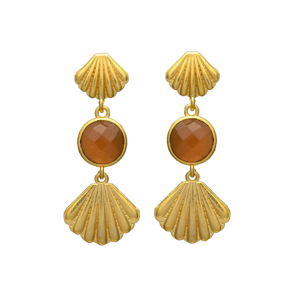 ต่างหูดีไซน์ใหม่สีทองประดับเปลือกหอย ดีไซน์โมนาลิซาสีน้ำตาล ประดับพลอย ตัวเรือนทองเหลือง สำหรับผู้หญิงและเด็กผู้หญิง