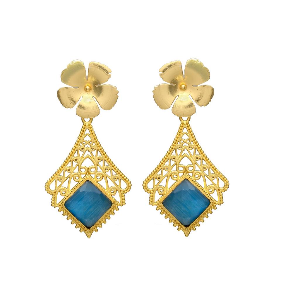 ต่างหูดีไซน์เนอร์สีทองประดับพลอยโมนาลิซาสีน้ำเงิน ต่างหูทองเหลืองสำหรับผู้หญิงและเด็กผู้หญิง สวมใส่ได้ทุกวัน