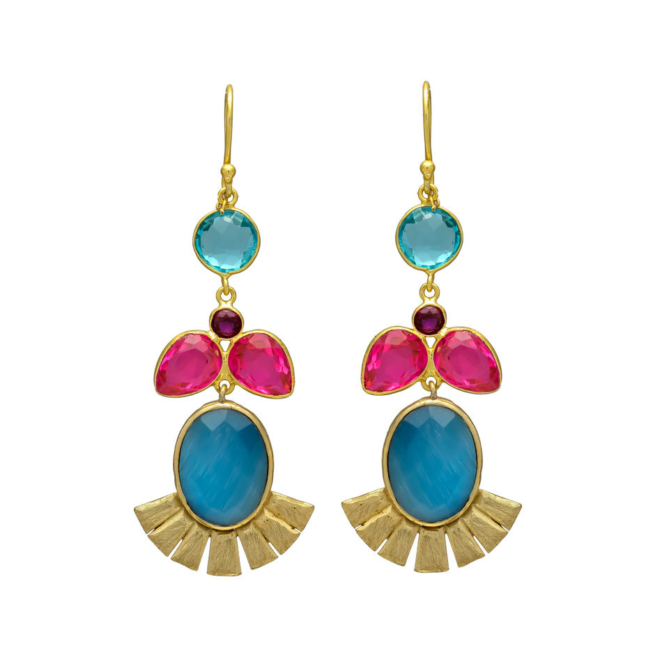 ต่างหูดีไซน์แบบห้อยโทนสีทองมาใหม่ต่างหูทองเหลืองพลอยควอตซ์สีฟ้าอ่อน