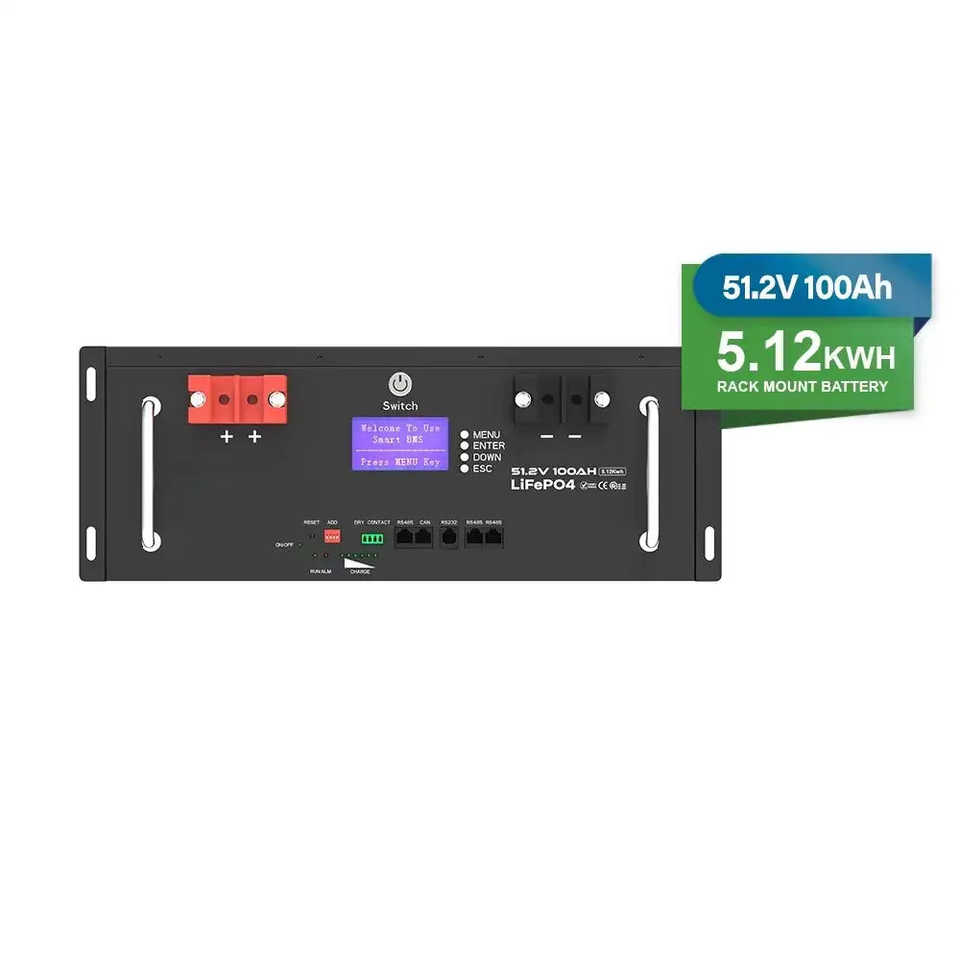 แบตเตอรี่ลิเธียมไอออนรุ่นใหม่ เกรด 51.2v 100Ah 5kw 10kw 15kw ระบบจัดการแบตเตอรี่อัจฉริยะ (Smart BMS) LifePO4 สำหรับเก็บพลังงานภายในบ้าน ระบบไฮบริดพลังงานแสงอาทิตย์ 10kwh