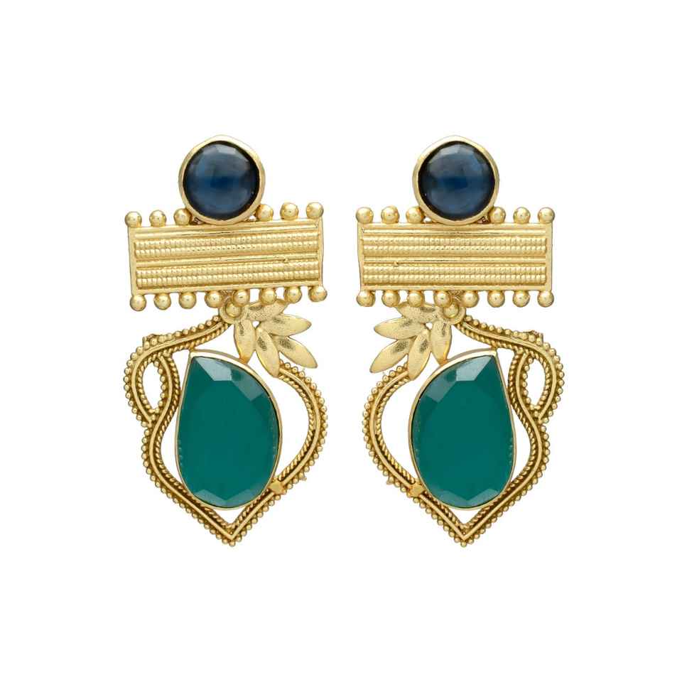 มาใหม่ต่างหูห้อยทองโอนิกซ์สีเขียวพร้อมสลักไพฑูรย์