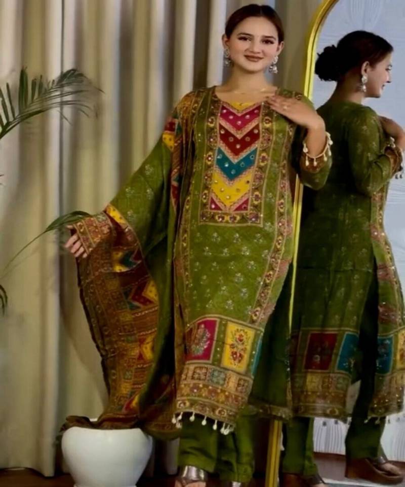 ชุดเสื้อคลุมปากีสถานสีเขียวมาใหม่ชุดปาร์ตี้ผ้าไหม georgette การออกแบบที่ทันสมัยมีคุณภาพสูงขายส่ง