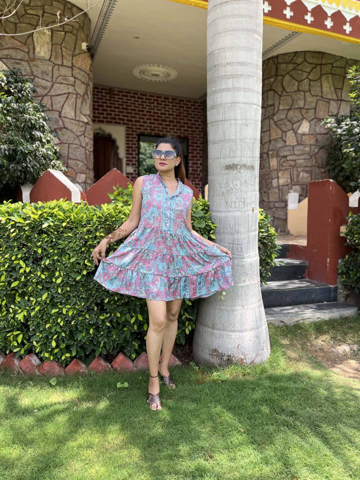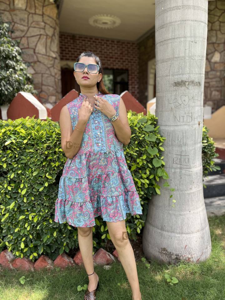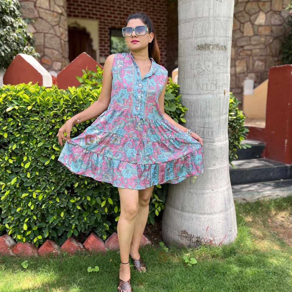 ชุดเดรสสั้นสไตล์ตะวันตกชิ้นเดียวพิมพ์ลายดอกไม้สไตล์ยิปซีมาใหม่ชุดเดรสลำลองแขนยาวถึงเข่าสำหรับผู้หญิงน้ำหนักเบา