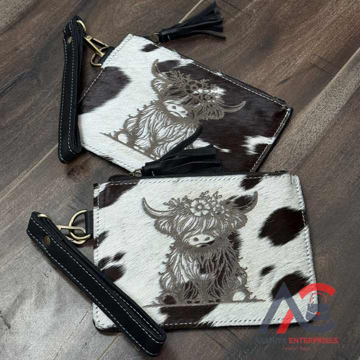 คลัทช์สลักลายด้วยเลเซอร์หนังวัวลายดอกไม้