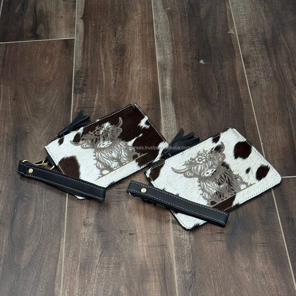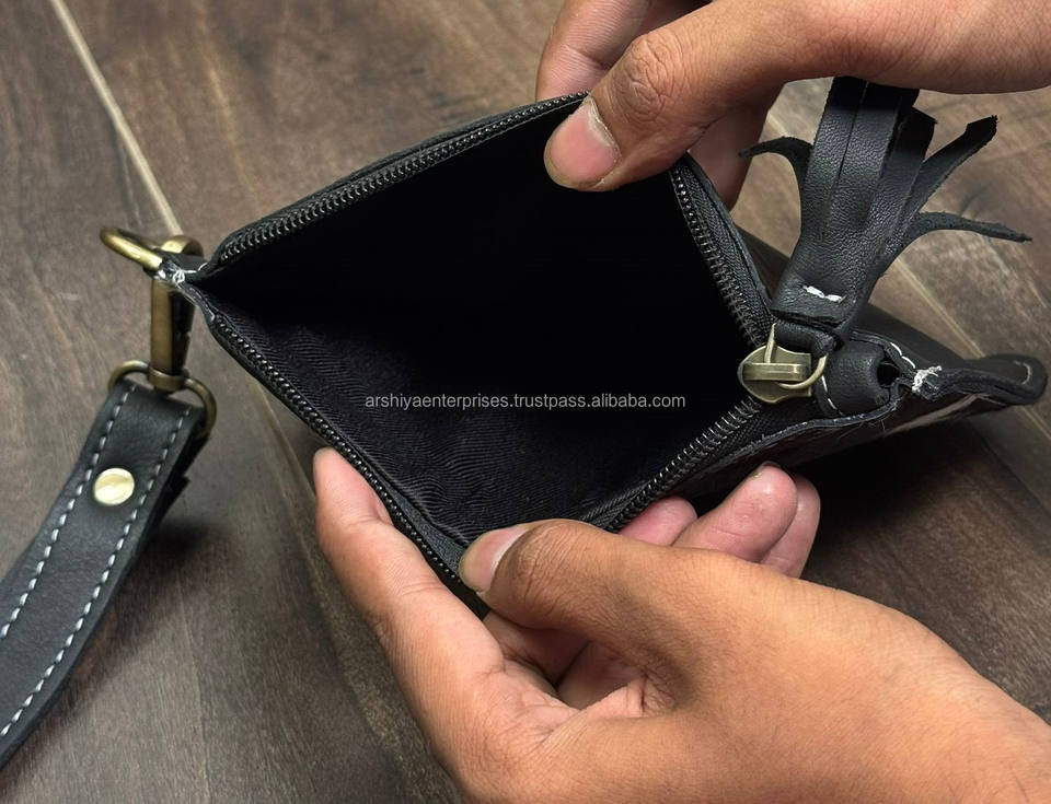กระเป๋าคล้องข้อมือหนังวัวพร้อมกระเป๋าคลัทช์แกะสลักลายดอกไม้พร้อมพู่และสายคล้องแบบถอดได้