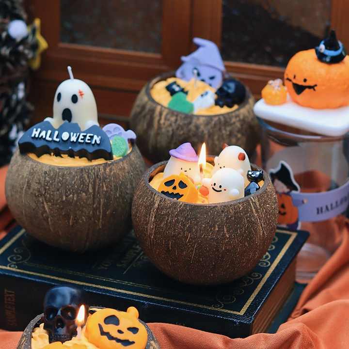 เทียนหอมกลิ่นมะพร้าวทำจากถั่วเหลืองของขวัญฮาโลวีนทำมือเป็นมิตรต่อสิ่งแวดล้อมสินค้ามาใหม่