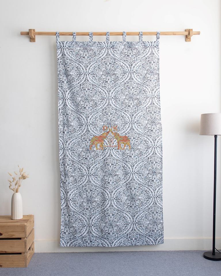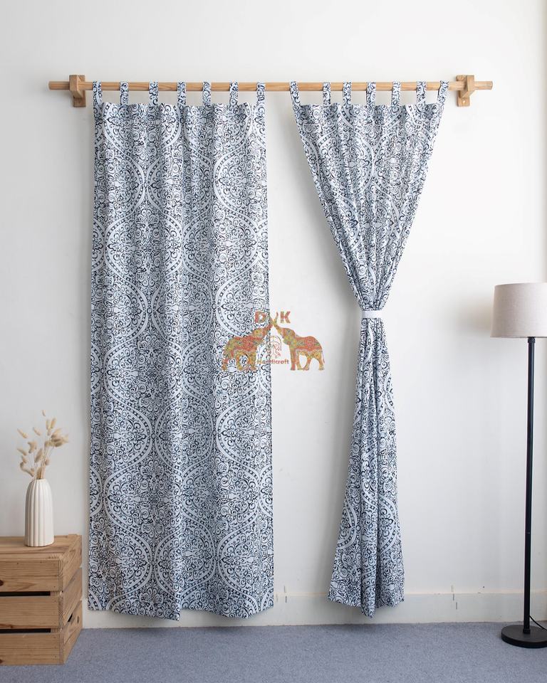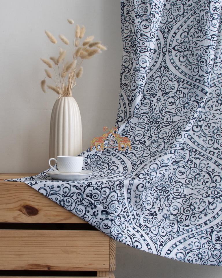 ชุดผ้าม่านพิมพ์ลายดอกไม้ผ้าฝ้ายบล็อกพิมพ์ลายด้วยมือแบบใหม่สำหรับประตูหน้าต่างบ้าน