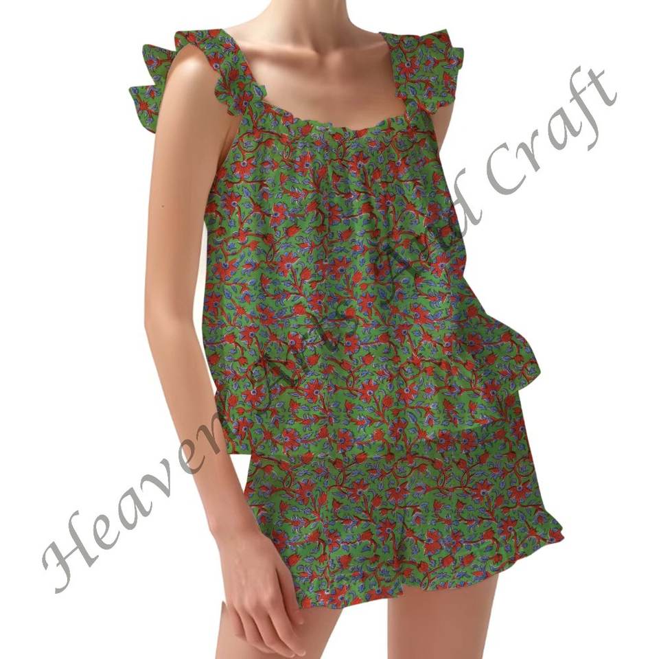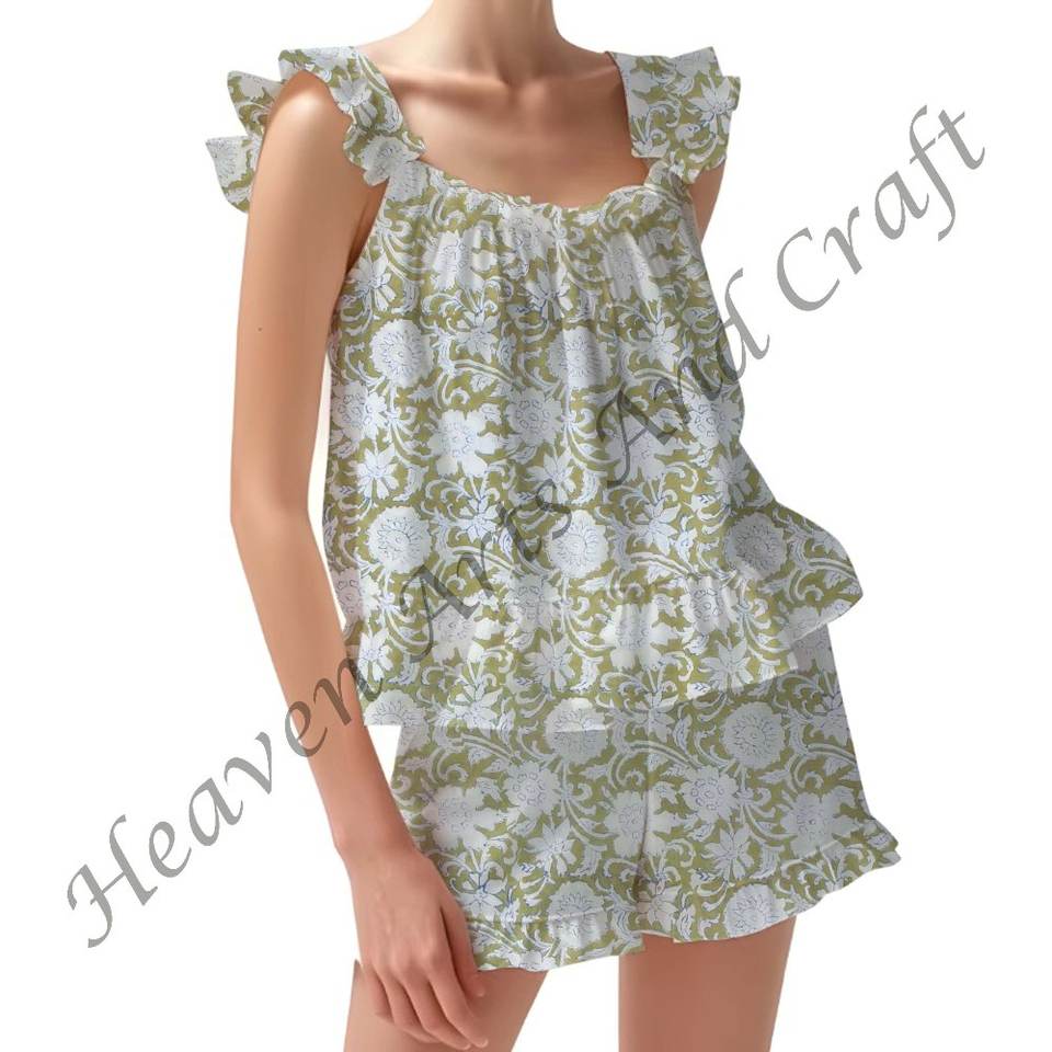 ชื่อผลิตภัณฑ์:ชุดนอนผ้าฝ้าย100% พิมพ์ลายมีระบาย