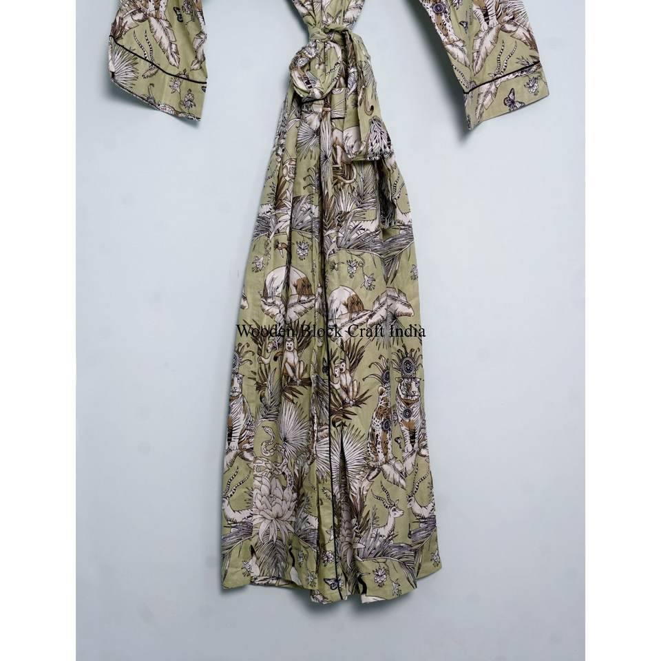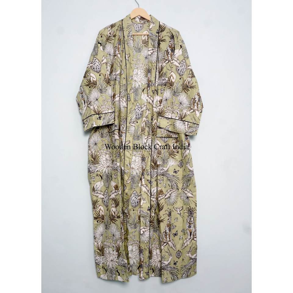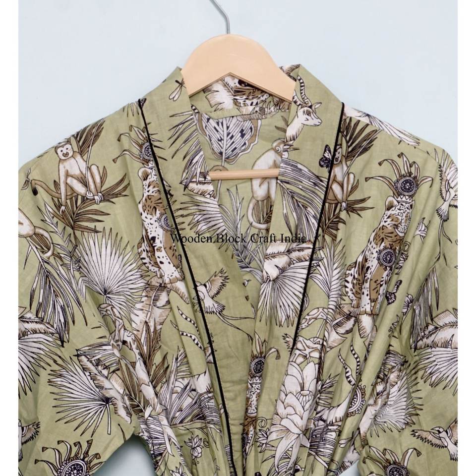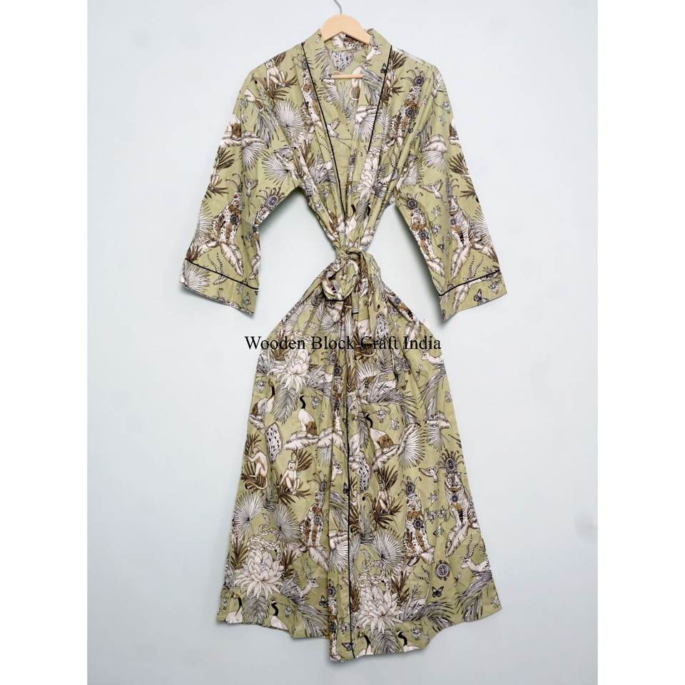 ชุดกิโมโนผ้าฝ้ายพิมพ์ลายบล็อกแฮนด์เมดแบบใหม่ ชุดคลุมอาบน้ำพิมพ์ลายราชสถาน ผ้าฝ้ายแท้ ชุดนอนผ้าฝ้ายทำมือสำหรับผู้หญิง