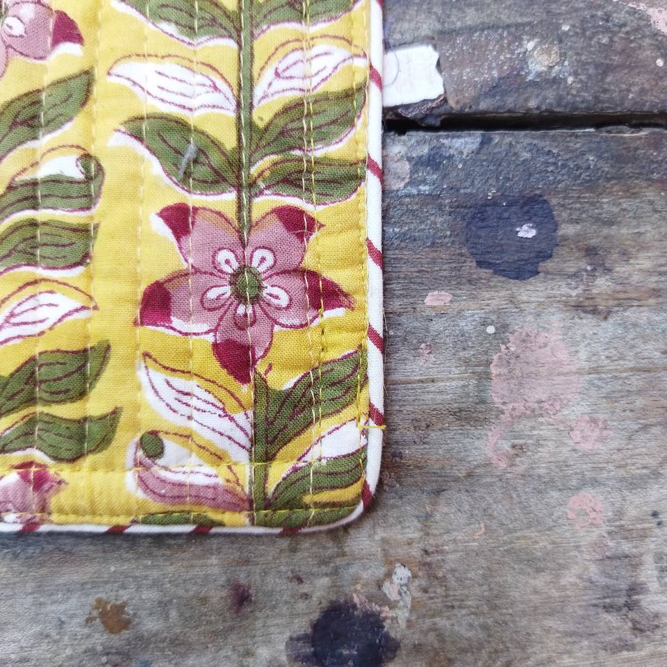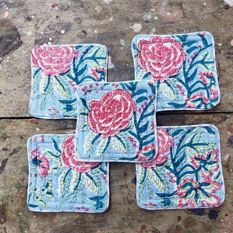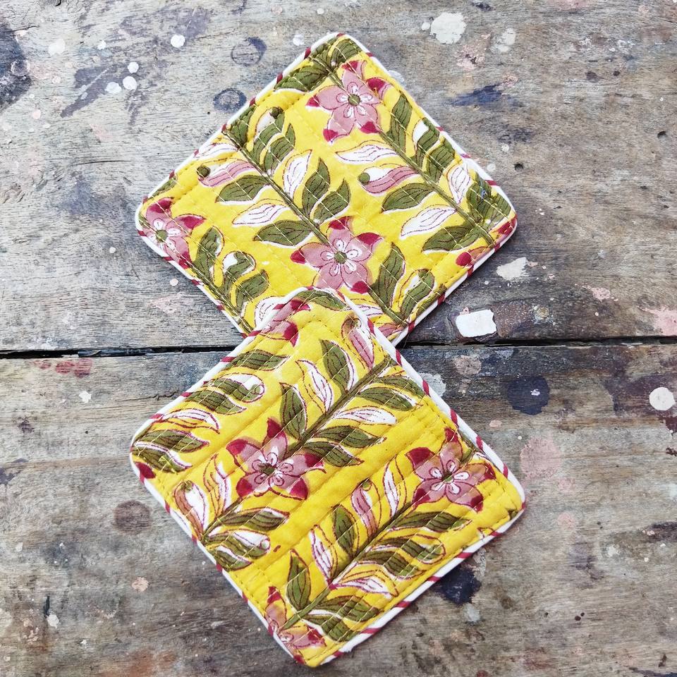 New Arrival Hand Block Printed Fabric Cotton Quilted Tea Coaster With Matching Piping Edge Drinking Mats Table Accessories