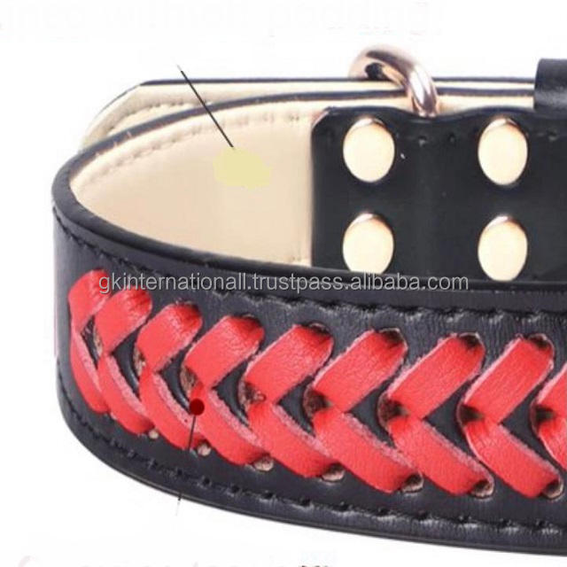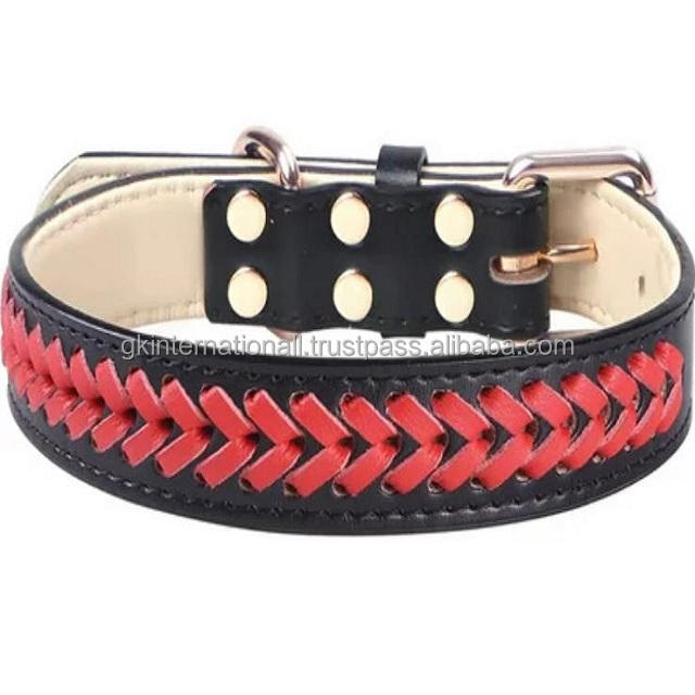 สินค้ามาใหม่ปลอกคอสุนัขบุนวมแบบถักมือปกหนังสำหรับสุนัขดีไซน์ถักเปียสีแดงปลอกคอสัตว์เลี้ยงสำหรับสุนัขทุกขนาด