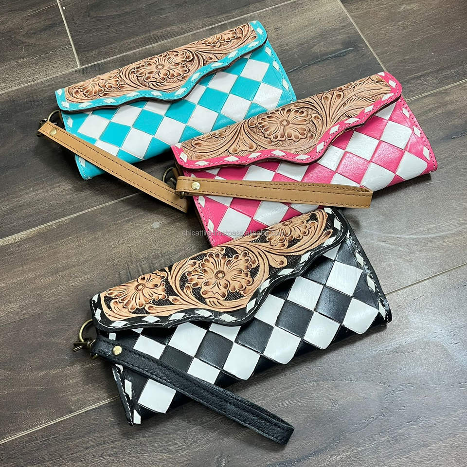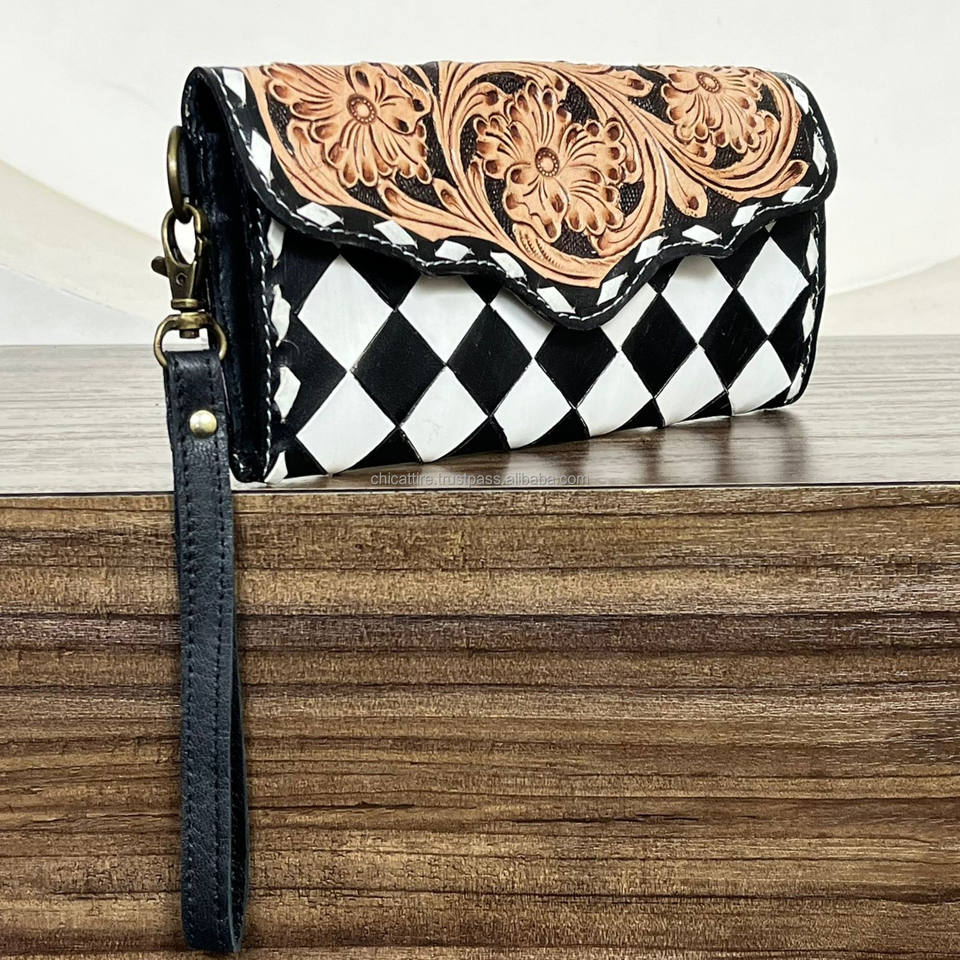 ชื่อสินค้า:กระเป๋าสตางค์ข้อมือหนังลายตารางทำมือ