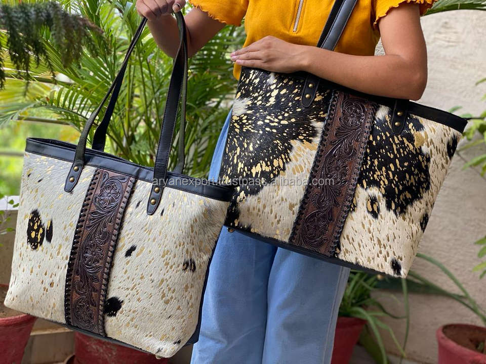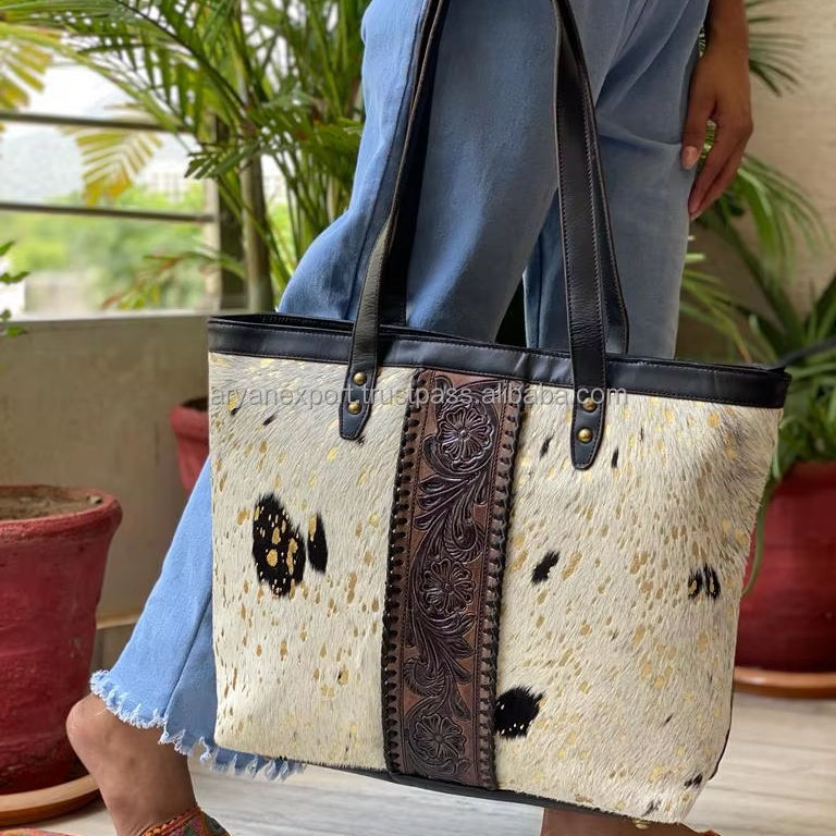 Hand Tooled Leather Cowhide Leather Tote Bag