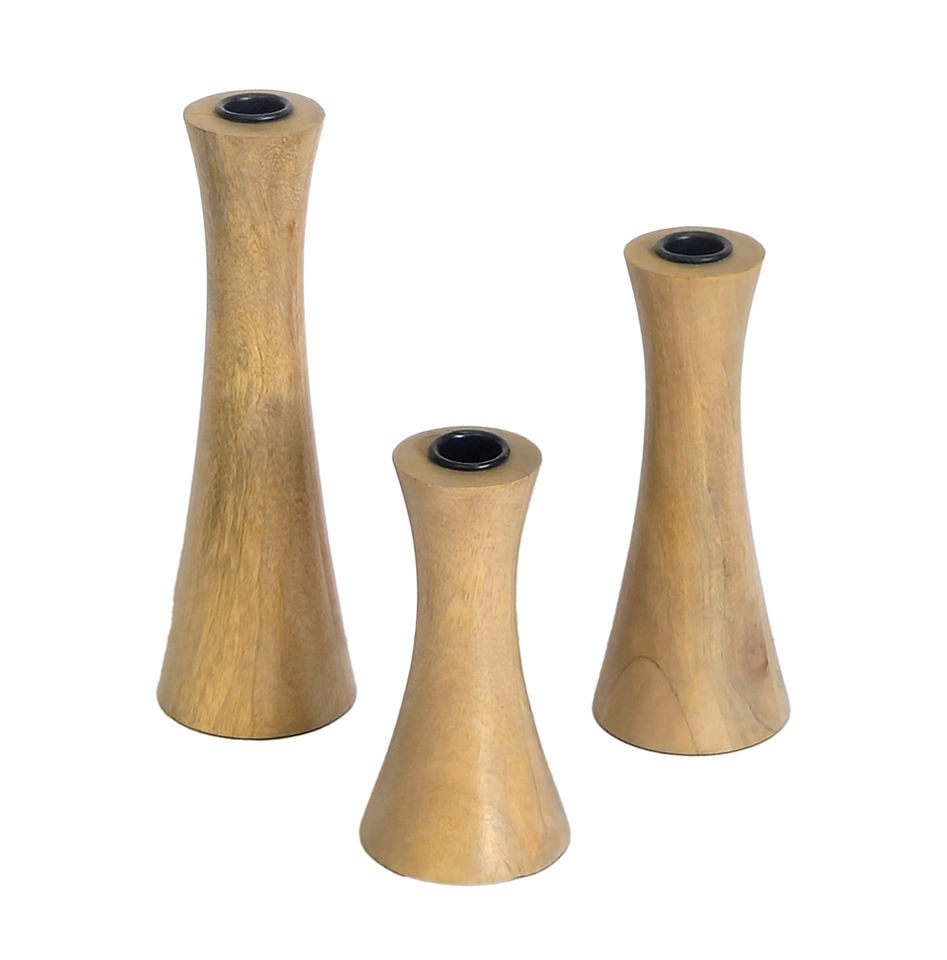 เชิงเทียนไม้รูปทรงหมุนด้วยมือสำหรับตกแต่งบ้านเสาที่ทันสมัยอย่างยั่งยืน