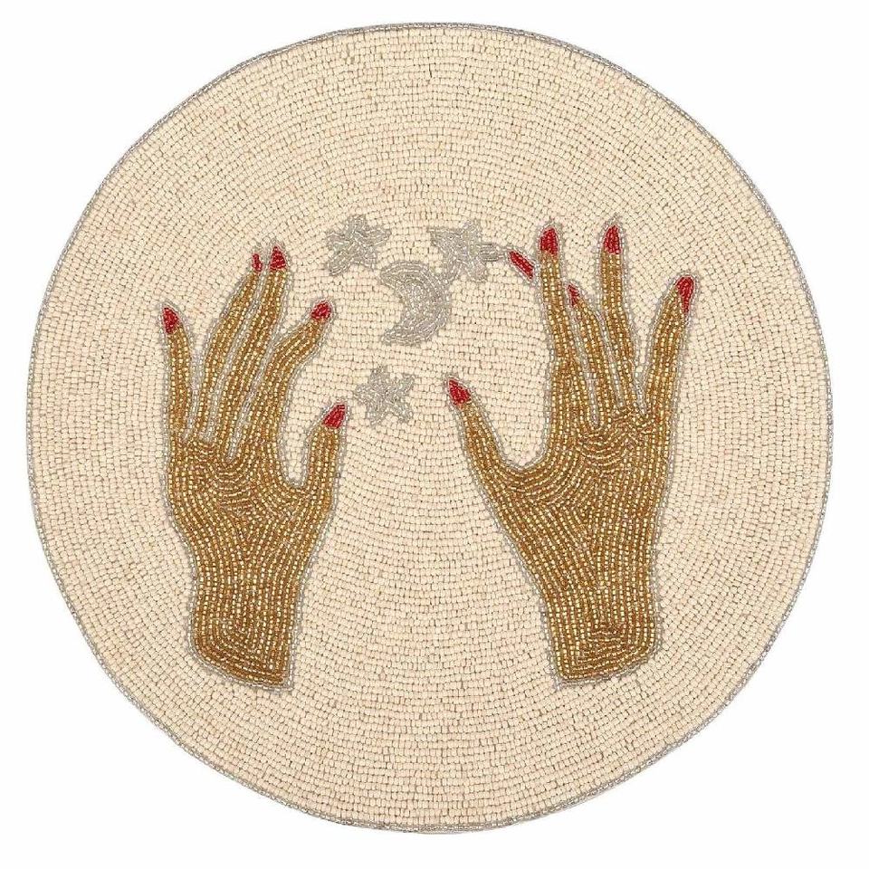 แผ่นรองจานทำมือแบบกันลื่น ประดับลูกปัดแก้ว โพลีเอสเตอร์ สำหรับโต๊ะอาหาร งานแต่งงาน งานเลี้ยง ตกแต่งบ้าน
