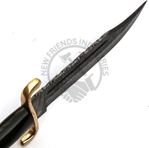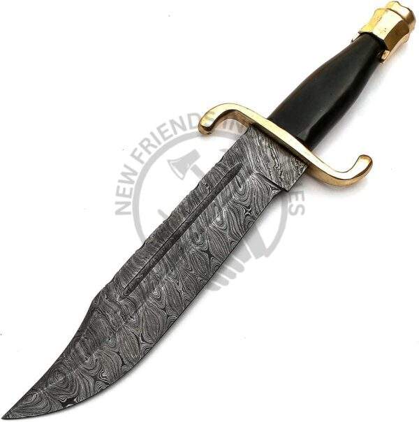 มีดโบวี่ทำมือลายดามัสกัสใหม่ล่าสุด มีดคมสำหรับล่าสัตว์ มีดเอาตัวรอด มีดสะสม ด้ามเขาสัตว์ มีดสำหรับตั้งแคมป์