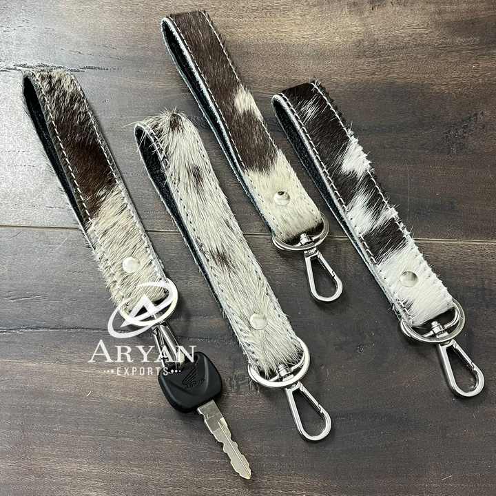 พวงกุญแจหนังวัวแท้ทำมือแบบใหม่ พร้อมคลิปโลหะ ทนทาน สายคล้องข้อมือหนังขนสัตว์ ปรับแต่งได้สำหรับทุกเพศ
