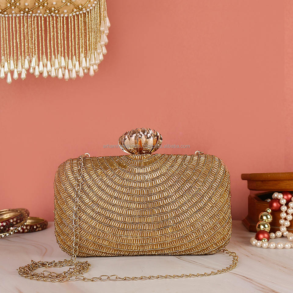มาใหม่แฮนด์เมดเย็บปักถักร้อยสีทองสลิงกระเป๋าผู้หญิงงานแต่งงานโปรดปรานชุดราตรีคลัทช์กระเป๋าแฮนด์เมดโดย LUXURY CRAFTS