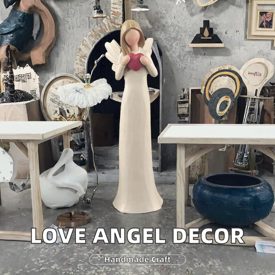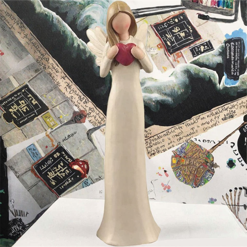 ตุ๊กตาเรซินเทวดามือวาดใหม่พร้อมหัวใจแห่งความรักตกแต่งบ้านรูปปั้นผู้พิทักษ์สำหรับคริสต์มาสและวันแม่