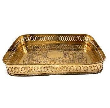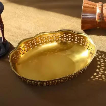 ถาดเสิร์ฟโลหะทำด้วยมือมาใหม่ถาดทองเหลืองโบราณพร้อมด้ามจับหรูหราถาดเสิร์ฟทองเหลือง