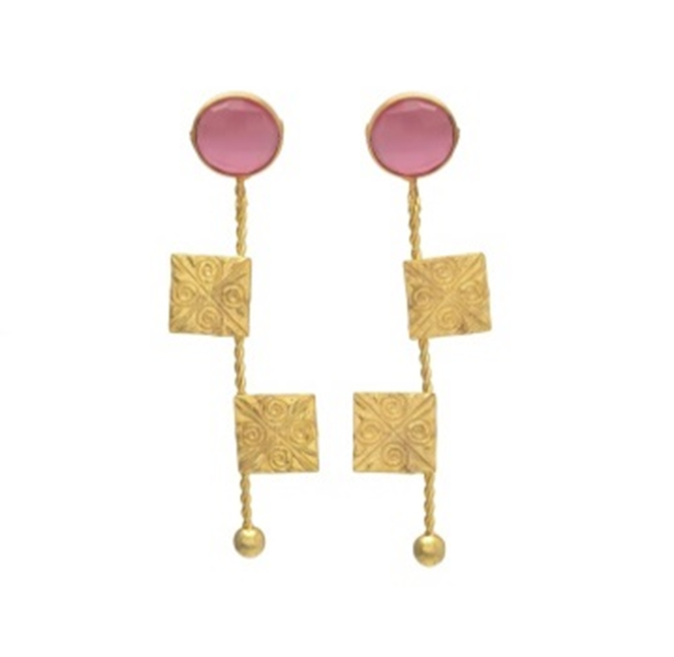 สินค้ามาใหม่ทำด้วยมือ monalisa หินอินเดียเครื่องประดับทองเหลืองแบบดั้งเดิมที่สวยงามต่างหูกลมที่มีตราประทับดอกไม้