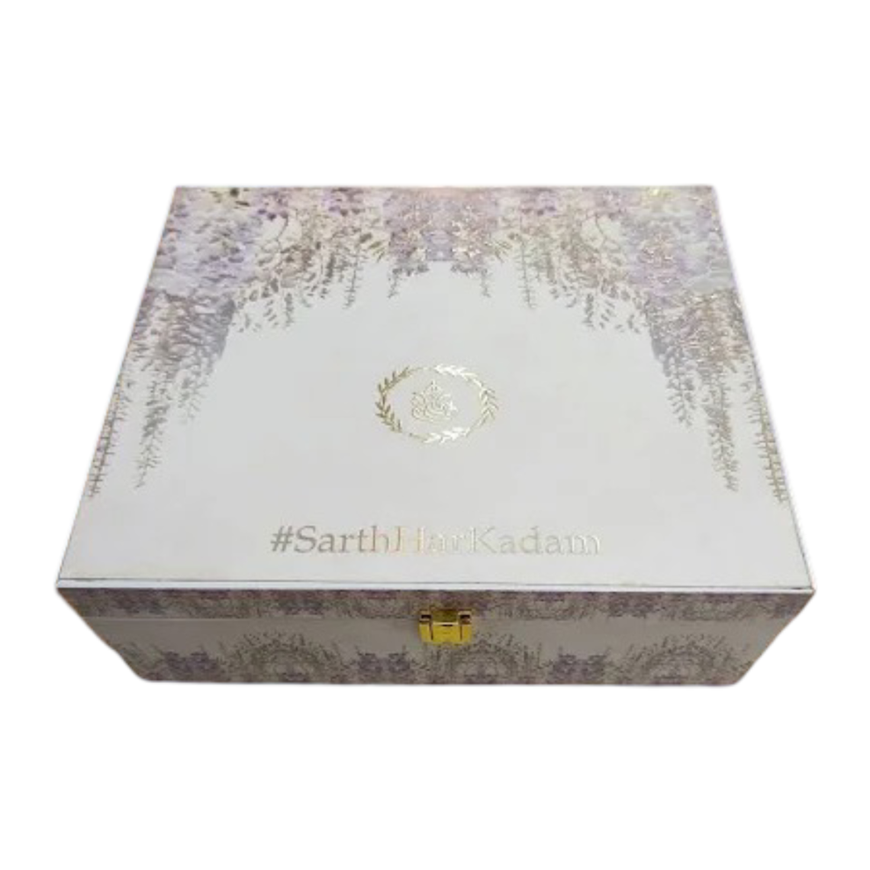 กล่องไม้เอ็มดีเอฟพิมพ์ลายทำด้วยมือมาใหม่กล่องของขวัญแต่งงานอินเดียกล่องผ้าไหมของขวัญแต่งงานของขวัญเพื่อนเจ้าสาว