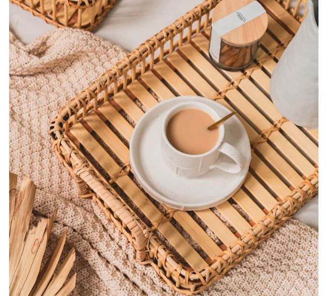 ถาดเสิร์ฟขนมหวายทำมือพร้อมกรอบไม้ถาดขนมมีสไตล์ออกแบบได้ตามต้องการ
