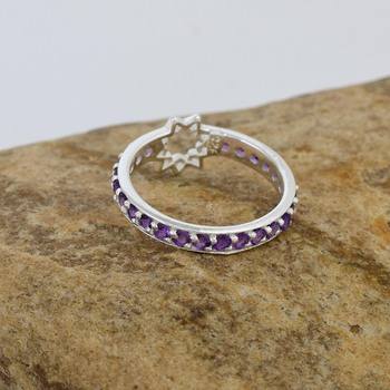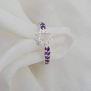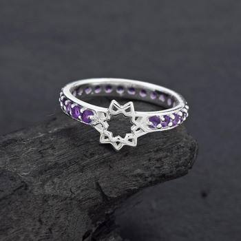แหวนเงินแท้ 925 ประดับพลอยอเมทิสต์สีม่วงธรรมชาติทรงดาว งานแฮนด์เมด ดีไซน์ใหม่ สำหรับผู้หญิง