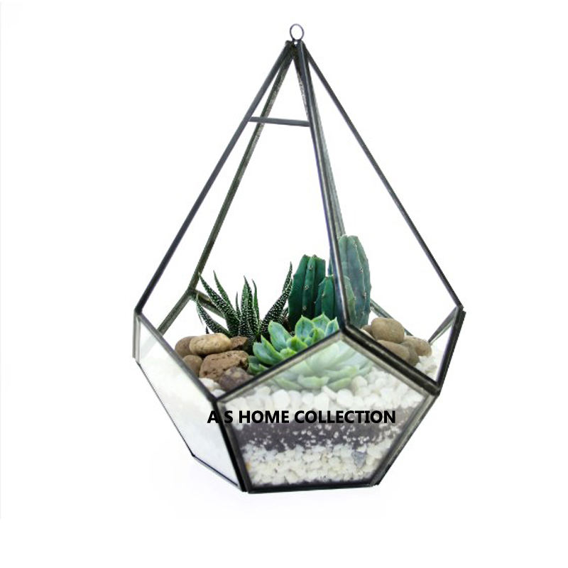 มาใหม่ทำด้วยมือโลหะสแตนเลสพร้อมกรอบกระจกใสสีทองเทอราเรียมรูปร่างที่แตกต่างกันสองแบบ