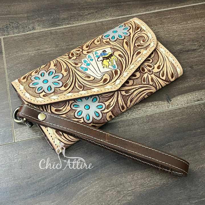 กระเป๋าสตางค์แบบคล้องมือแบบหนังคาวบอย & การ์ด