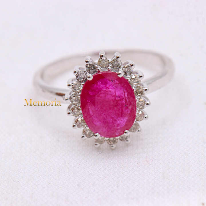 แหวนหมั้นทำด้วยมือสำหรับผู้หญิงมาใหม่อัญมณีเพชรทับทิมธรรมชาติสีทองขาว14K แข็งสำหรับงานแต่งงานขายส่ง