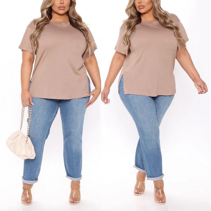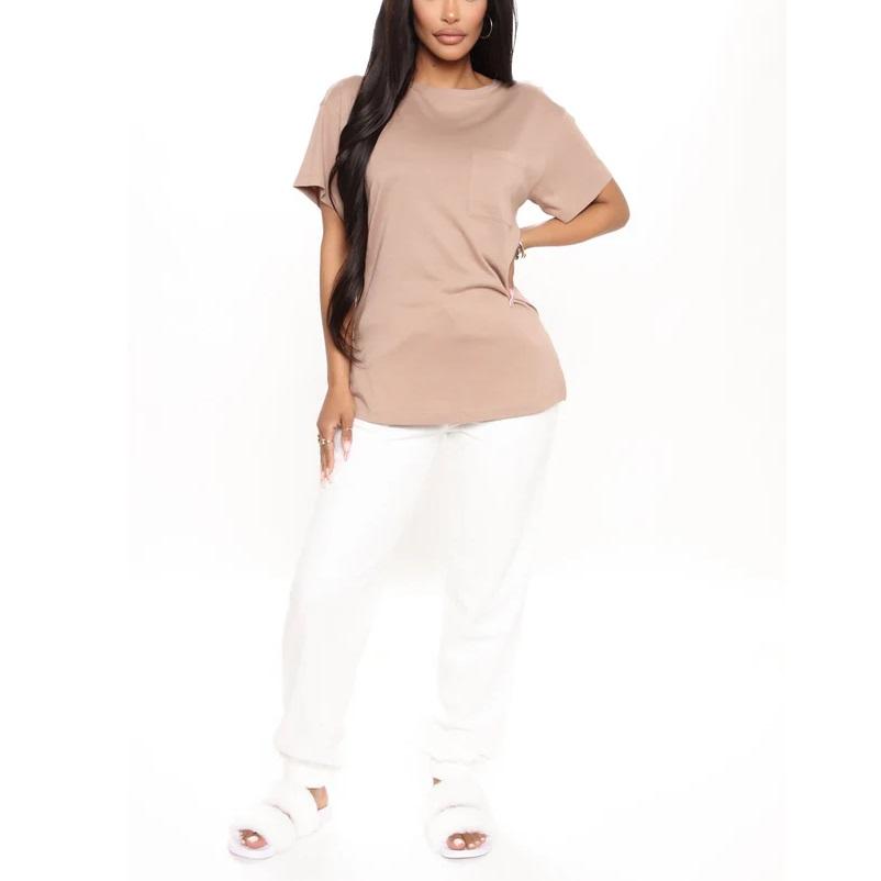 เสื้อยืดคอกลมแขนสั้นทรงปกติสำหรับผู้หญิง รุ่นใหม่ คุณภาพสูง ผ้าถัก 100% ผ้าฝ้าย 220 กรัม ระบายอากาศได้ดี มีโลโก้