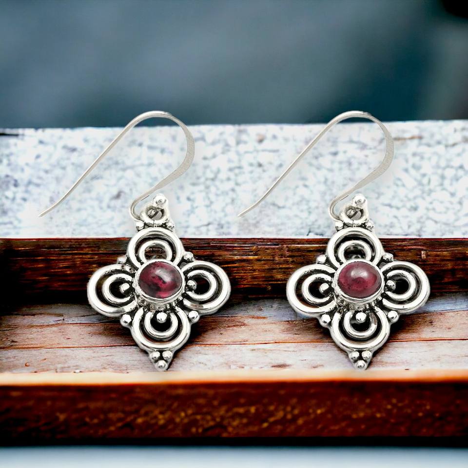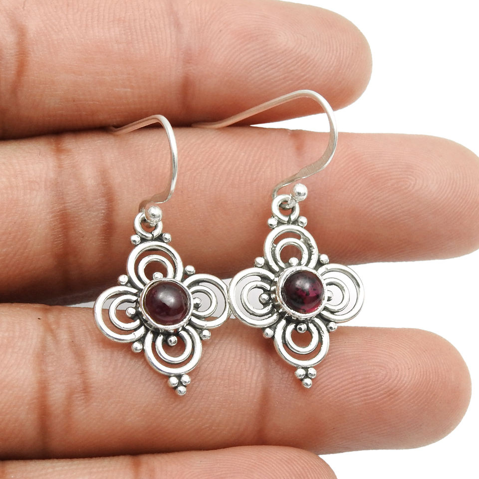 มาใหม่คุณภาพสูง925เงินสเตอร์ลิงธรรมชาติโกเมนสีแดงต่างหูรูปดอกไม้ทำด้วยมือเครื่องประดับอินเดียสำหรับเธอ