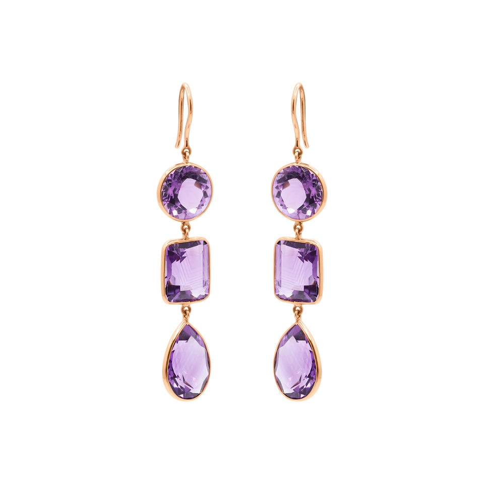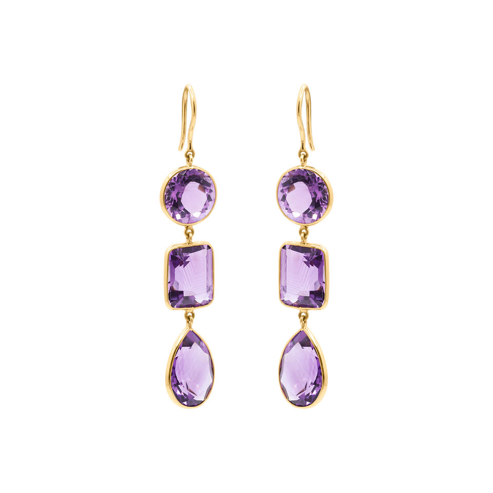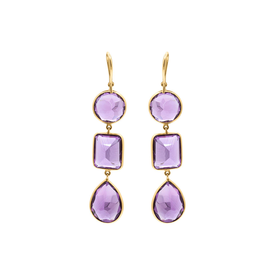 สินค้ามาใหม่คุณภาพสูงพลอยอเมทิสต์18K ต่างหูแบบห้อยทำด้วยมือทำจากทองคำแข็ง