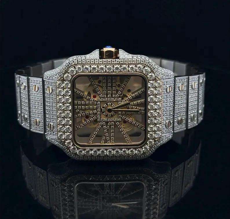 นาฬิกากลไกทรงสี่เหลี่ยมแบบอะนาล็อกโบราณคุณภาพสูงมาใหม่นาฬิกาสแตนเลสสตีลพรีเมียมแบบทูโทนหรูหรา20มม.