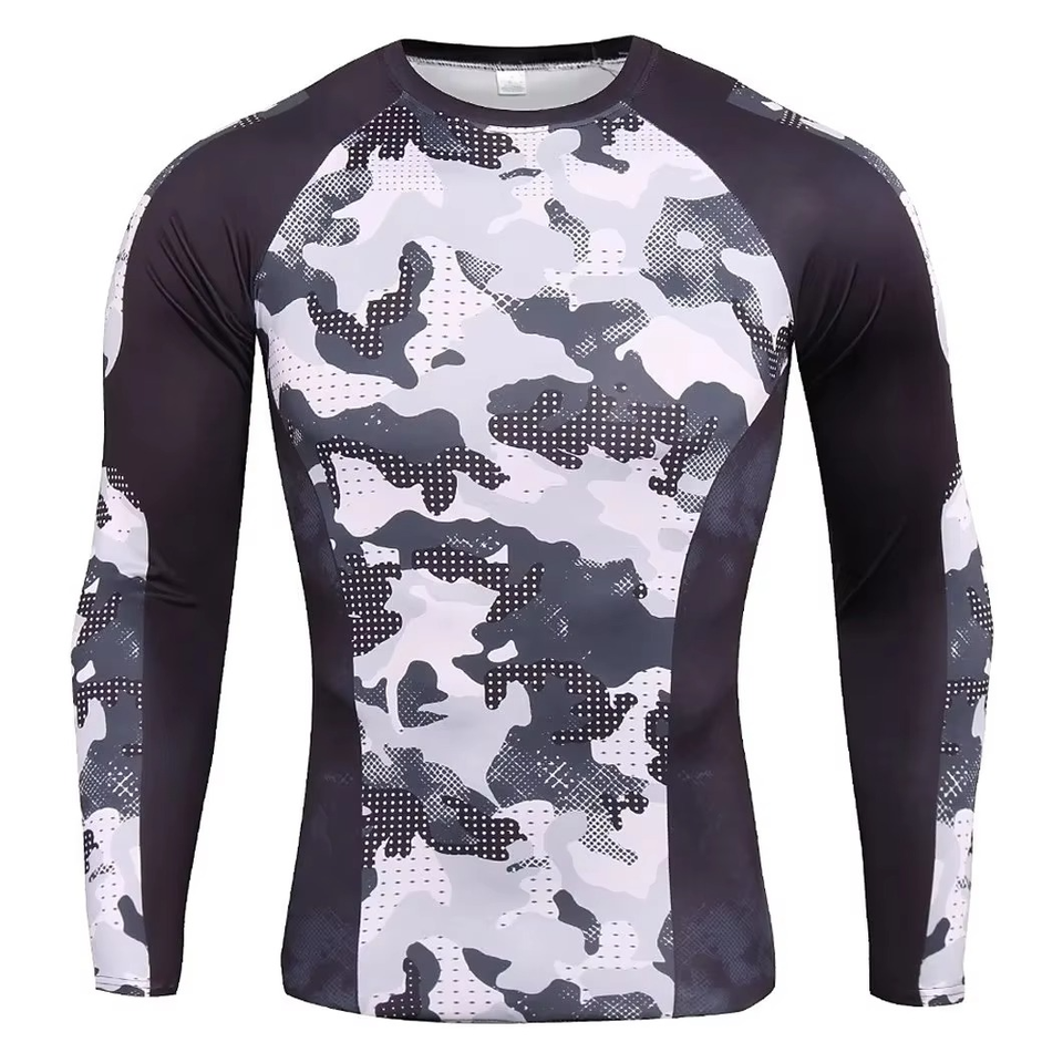 เสื้อรัดกล้ามเนื้อ BJJ คุณภาพสูงสำหรับผู้ชาย แขนยาว พิมพ์ลายด้านหน้าด้วยเทคนิคซิลค์สกรีน น้ำหนัก 220 กรัม บริการ OEM ยืดหยุ่น แห้งเร็ว รุ่นใหม่ล่าสุด