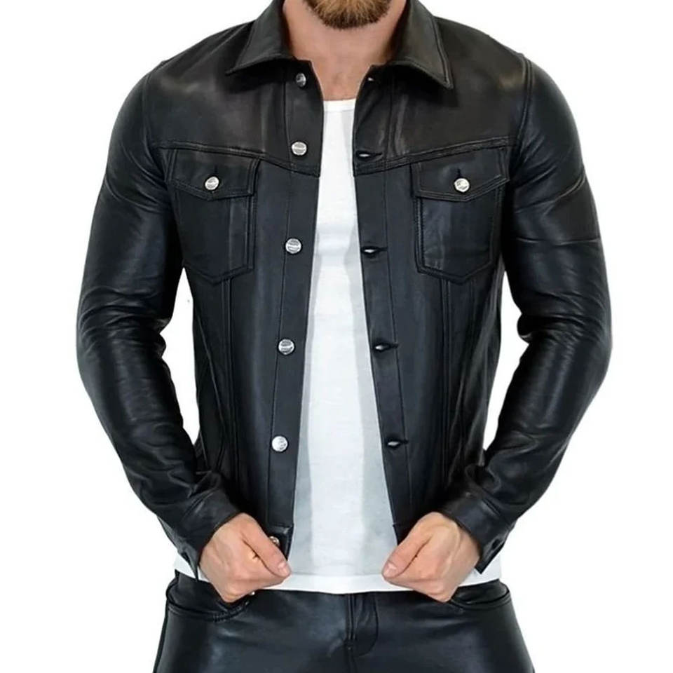 เสื้อหนังแกะสำหรับผู้ชายเสื้อเชิ้ตหนังหลายสีแขนยาวน้ำหนักเบา