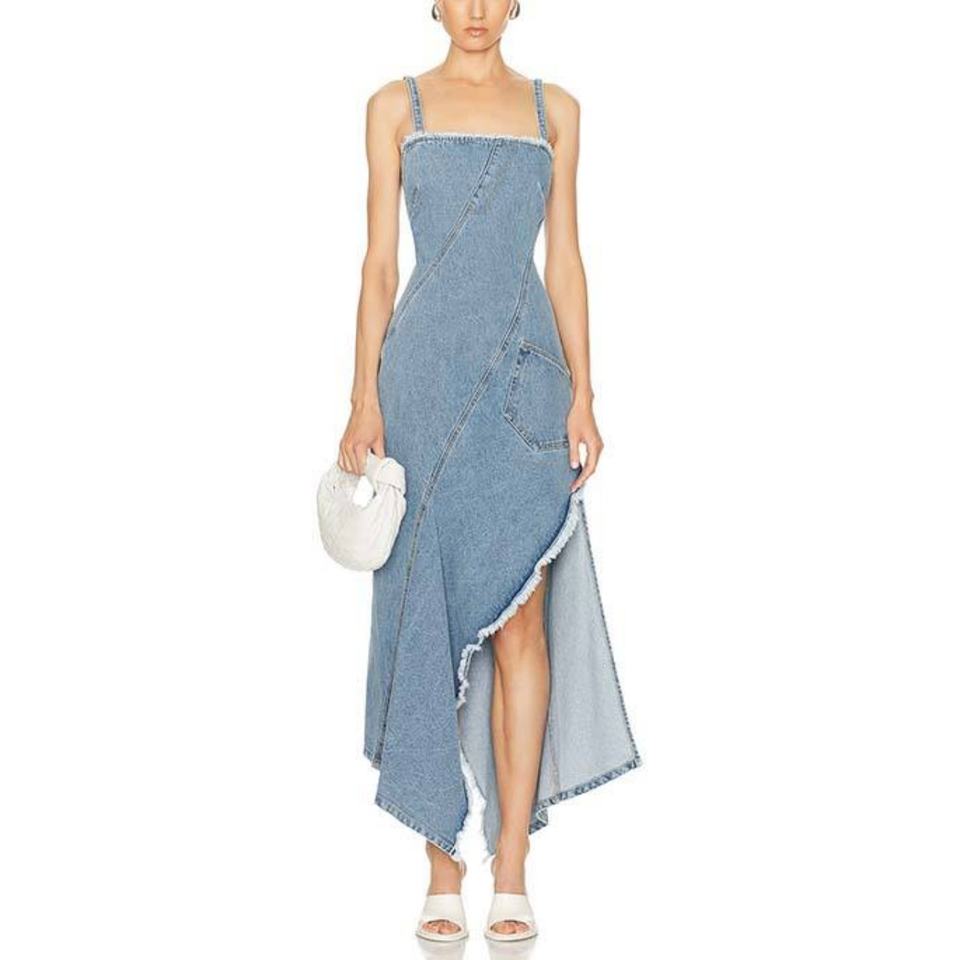 เดรสยีนส์คุณภาพสูงมาใหม่สำหรับผู้หญิง สายเดี่ยวเซ็กซี่ สไตล์วินเทจ ล้างสีแบบเอซิด ทรงเข้ารูปยาว แม็กซี่เดรสยีนส์ OOTD