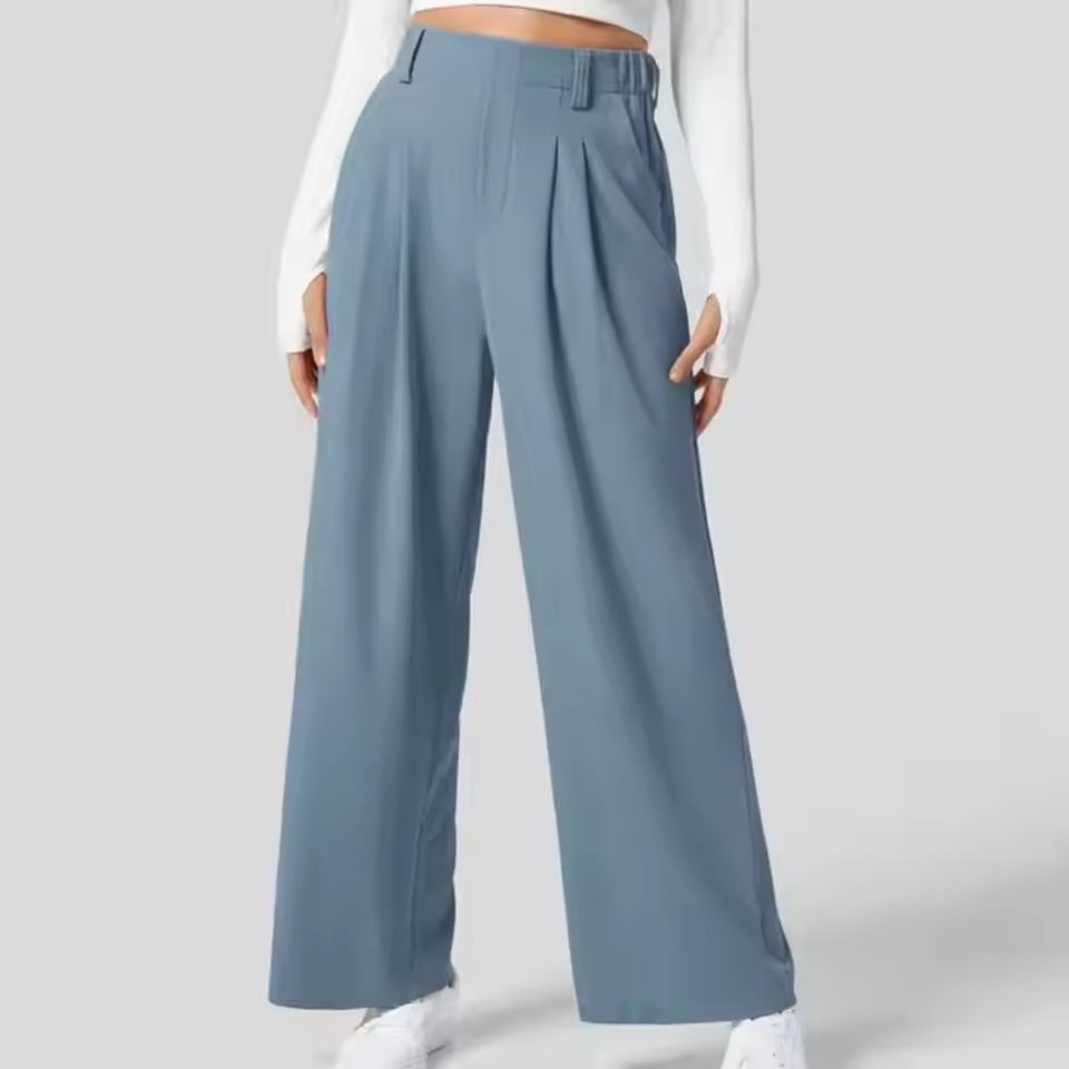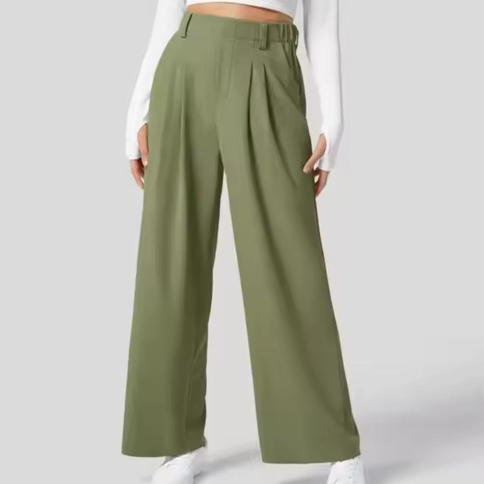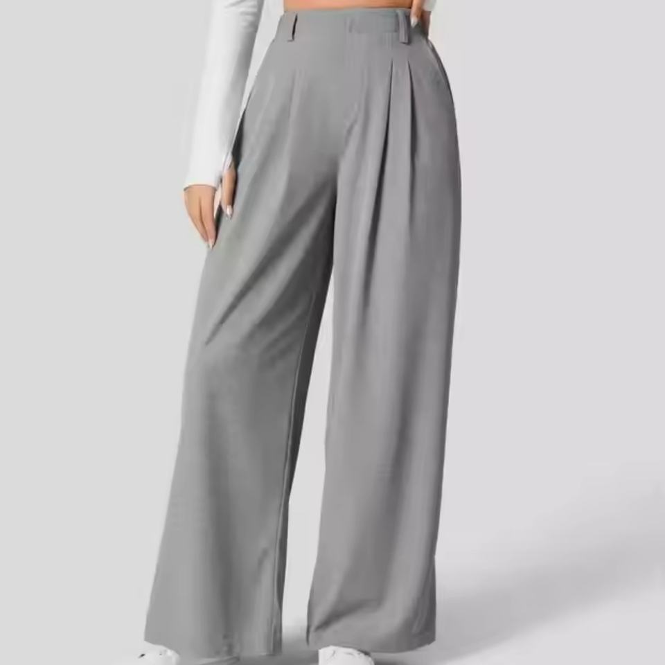 กางเกงขายาวผ้าลินินคุณภาพสูงแบบใหม่ สไตล์ลำลองทรงตรง เหมาะสำหรับใส่ทำงาน เอวสูง กางเกงขากว้างสำหรับผู้หญิง