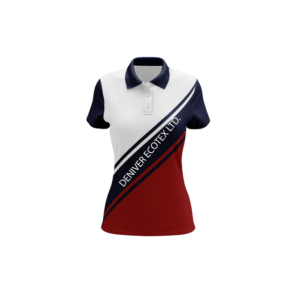 New Arrival High Quality Manufacturer Apparel Embroidered Logo Golf Wear Custom Striped Polo Shirt for Womens From Bangladesh