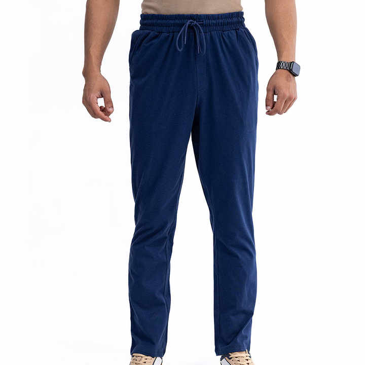 กางเกงจ็อกเกอร์ผู้ชายสีน้ำเงินทรงสลิมฟิตคุณภาพสูงรุ่นใหม่ ใส่สบายสำหรับออกกำลังกาย เอวยางยืดพร้อมกระเป๋าข้าง