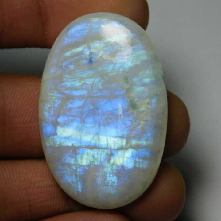 มาใหม่หินมูนสโตนสีรุ้งอัญมณีเจียระไนทรงไข่เหลี่ยมธรรมชาติสำหรับเครื่องประดับสร้อยคอทำขั้นต่ำ100ชิ้น