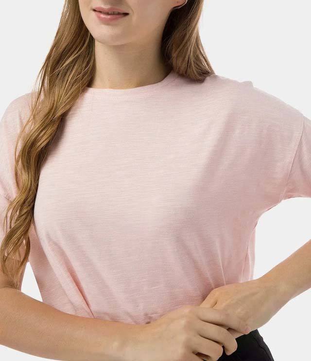เสื้อยืดครอปสีชมพูคุณภาพสูงสำหรับผู้หญิงมาใหม่ สไตล์ลำลองเก๋ไก๋ ชุดสตรีทแวร์สุดฮิต แฟชั่นผู้หญิง OEM
